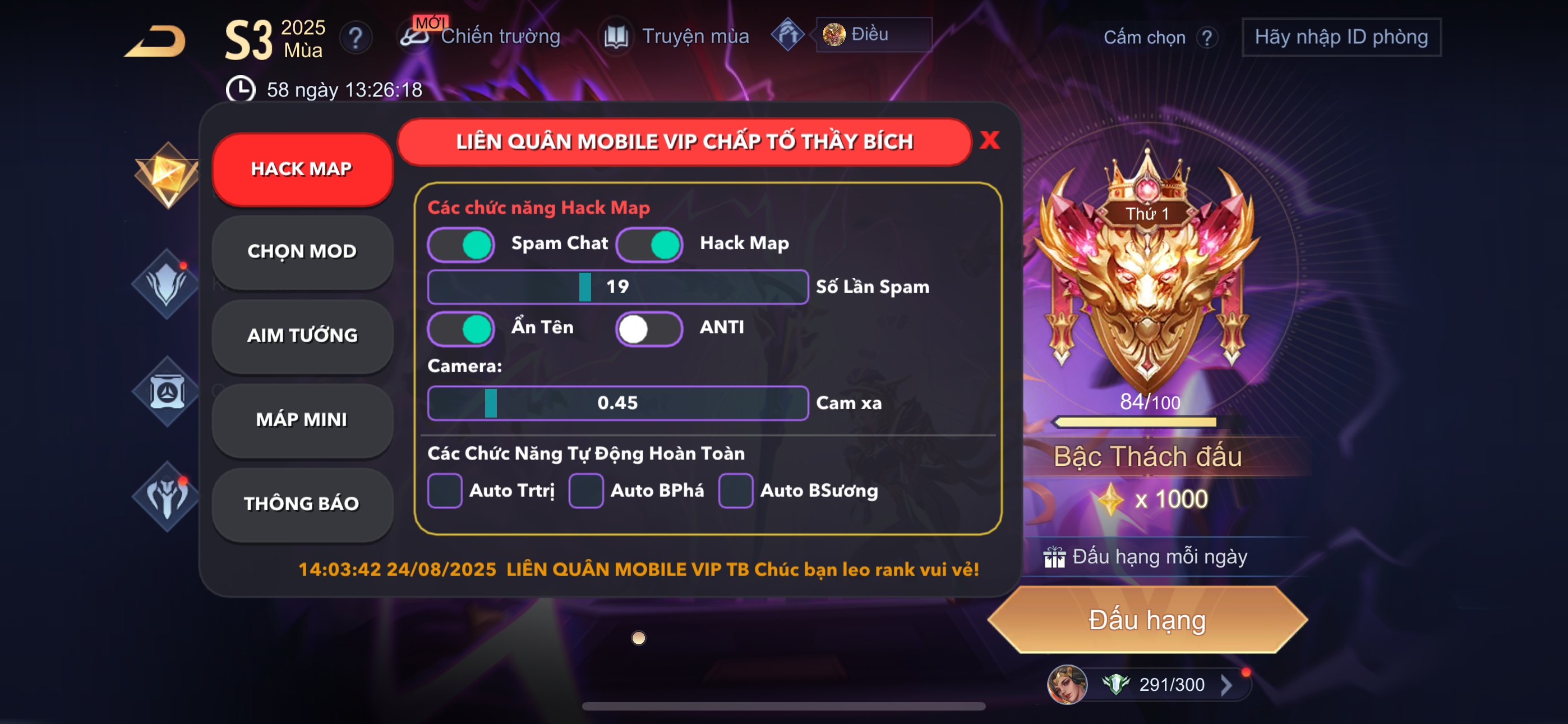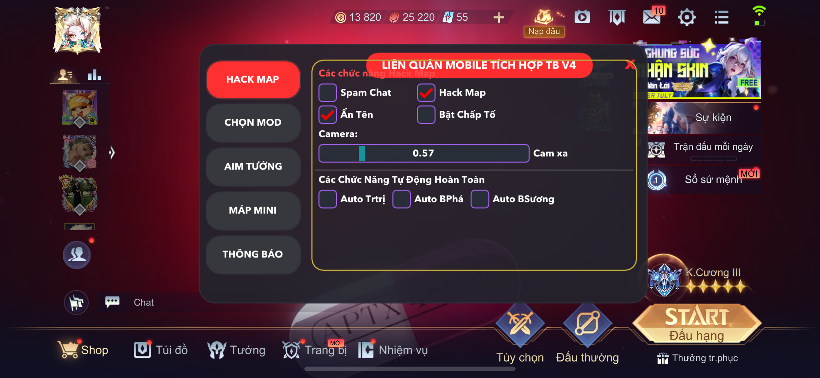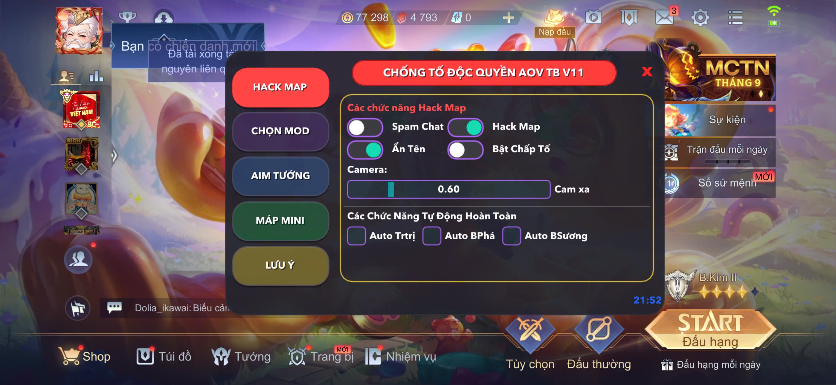 Chấp tố Và kín Tích hợp .Key ngày 15.000 :key Tuần 100.000 :key Tháng 230.000 Nạp tiền ở mục trên và mua key